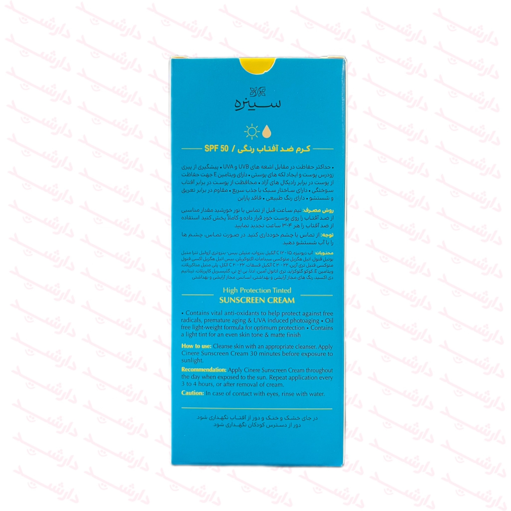 کرم ضد آفتاب سینره SPF50 بژ روشن مناسب پوست خشک 50 میلی لیتر