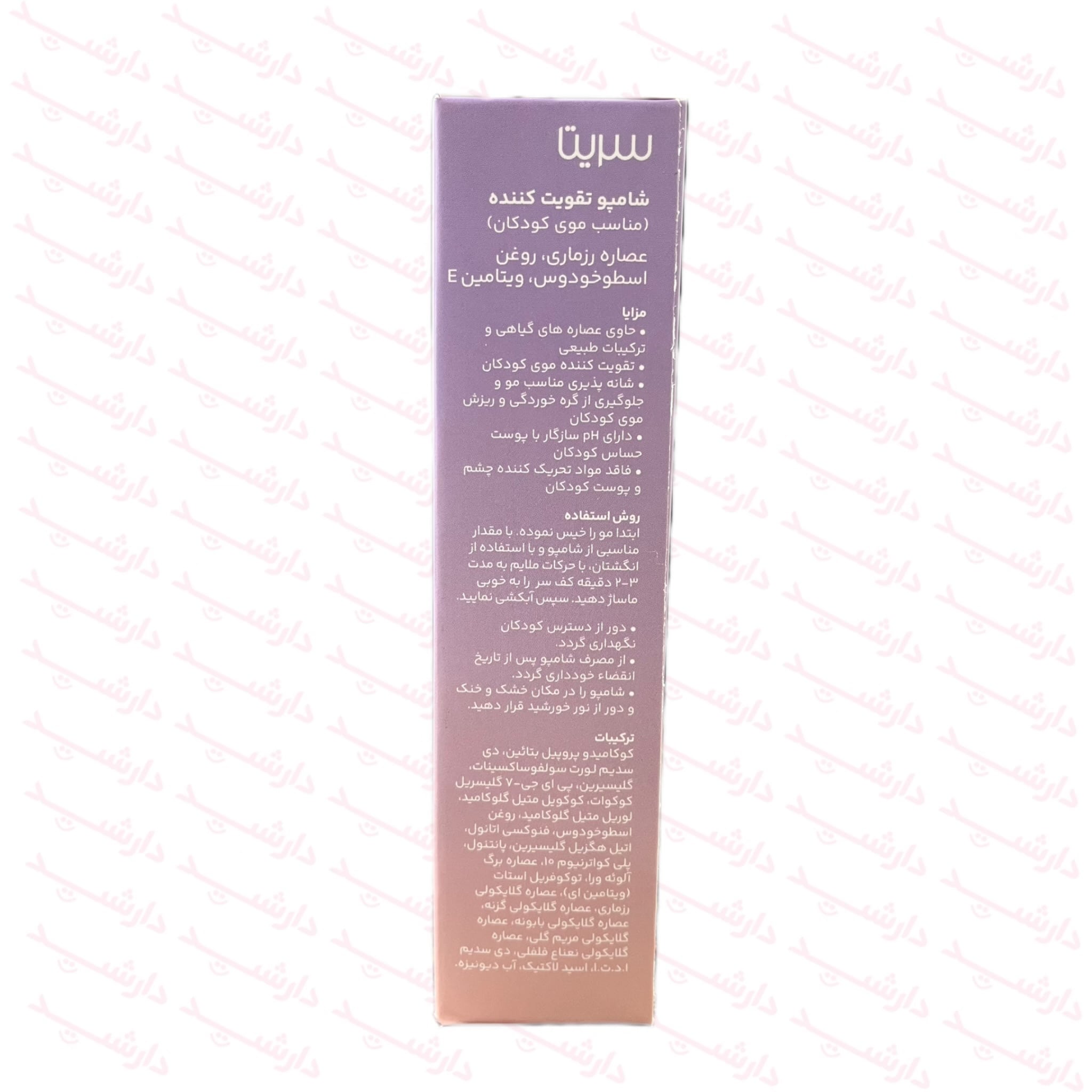 - بررسی شود که ph شامپو سریتا سازگار با پوست کودک است.