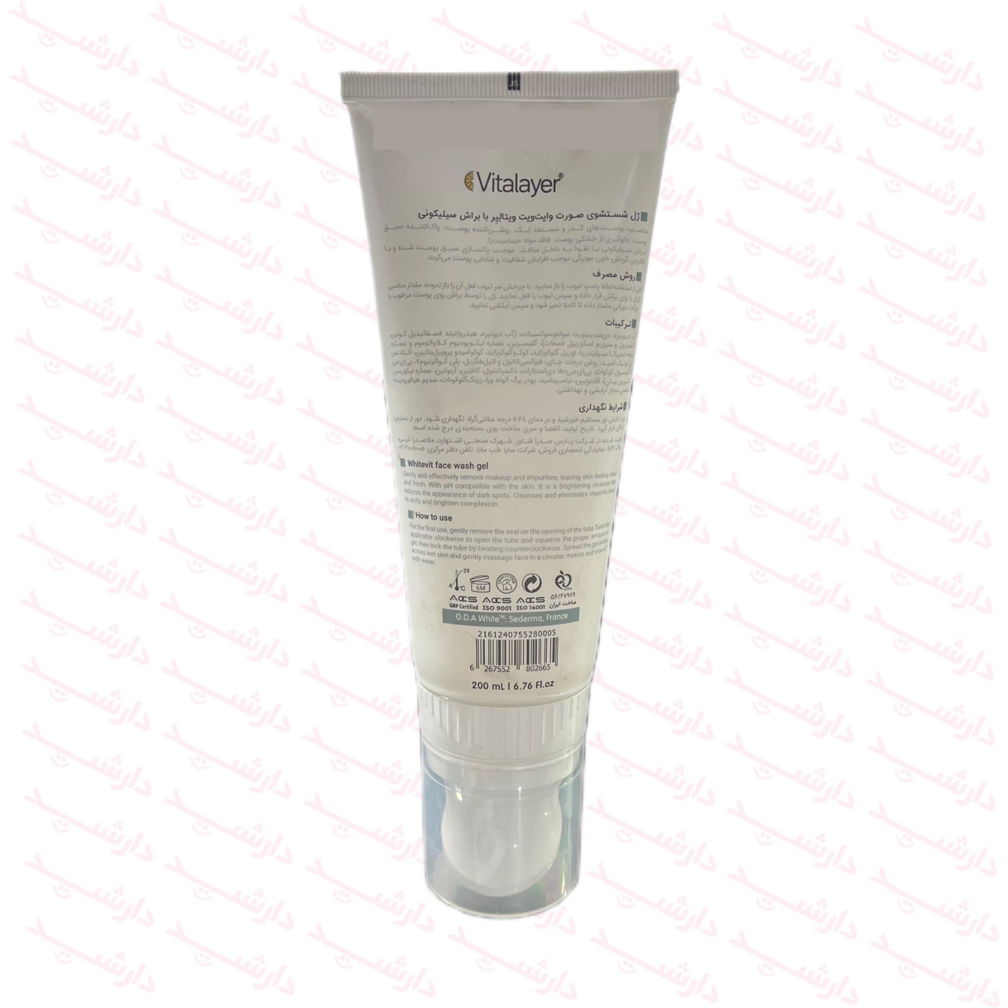 ژل شستشوی صورت وایت ویت ویتالیر با براش سیلیکونی مناسب پوست کدر و مستعد لک 200 میلی لیتر